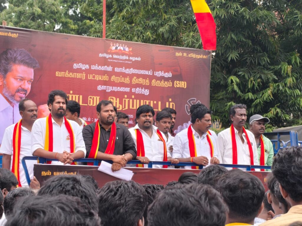 தமிழக மக்களின் வாக்குரிமையை பறிக்கும் வாக்காளர் பட்டியல் சிறப்புத் தீவிரத் திருத்தத்தில் (SIR) உள்ள குளறுபடிகளை எதிர்த்து, தமிழக வெற்றிக் கழகத்தின் தலைவர் தளபதி விஜய் அவர்களின்