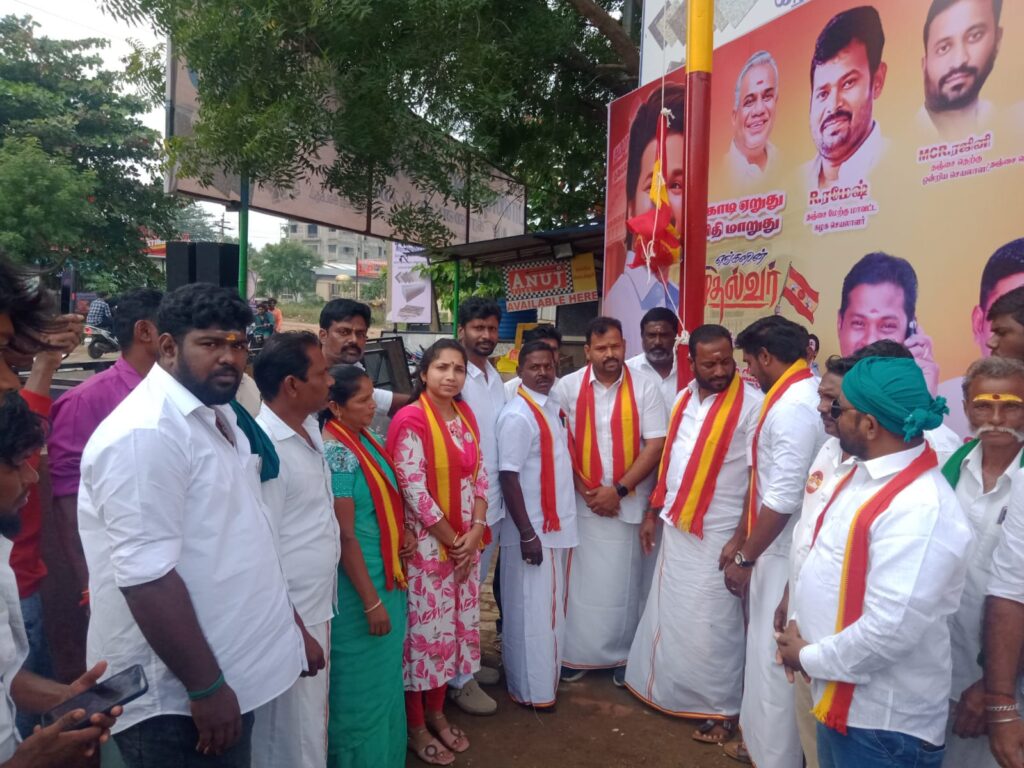 தஞ்சை மேற்கு மாவட்டம், தஞ்சை தென்கிழக்கு ஒன்றியம், விளார் பகுதியில் தமிழக வெற்றிக் கழக கொடியேற்று விழா